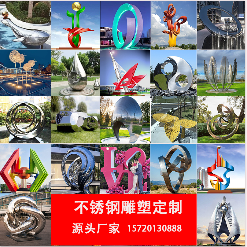 户外大型不锈钢雕塑定制学校园林广场鹿月亮圆环镂空球水景观浪花热门设计联盟服务商