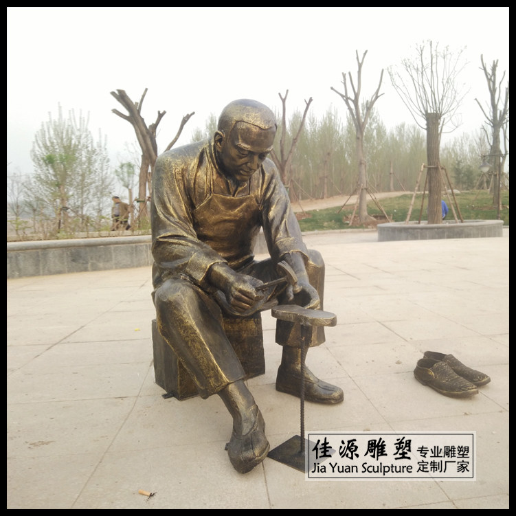 玻璃钢树脂仿铜补鞋匠人雕塑商业街步行街景观摆件修鞋景观小品热门设计联盟服务商