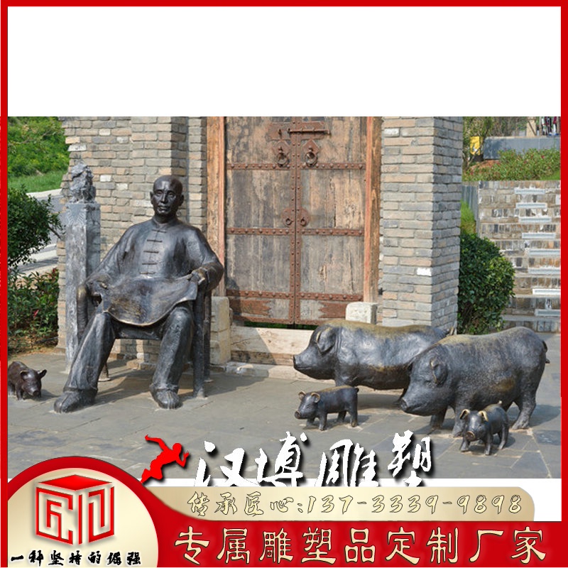 玻璃钢仿铜传统人物雕塑门口休息养猪建筑商业街步行街景观小品热门设计联盟服务商