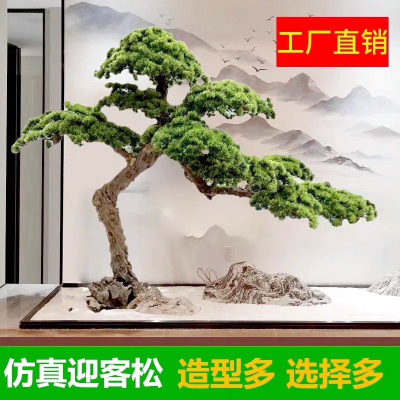 迎客松假树仿真松树美人松盆景罗汉松景观摆件新中式玄关造景装饰热门设计联盟服务商