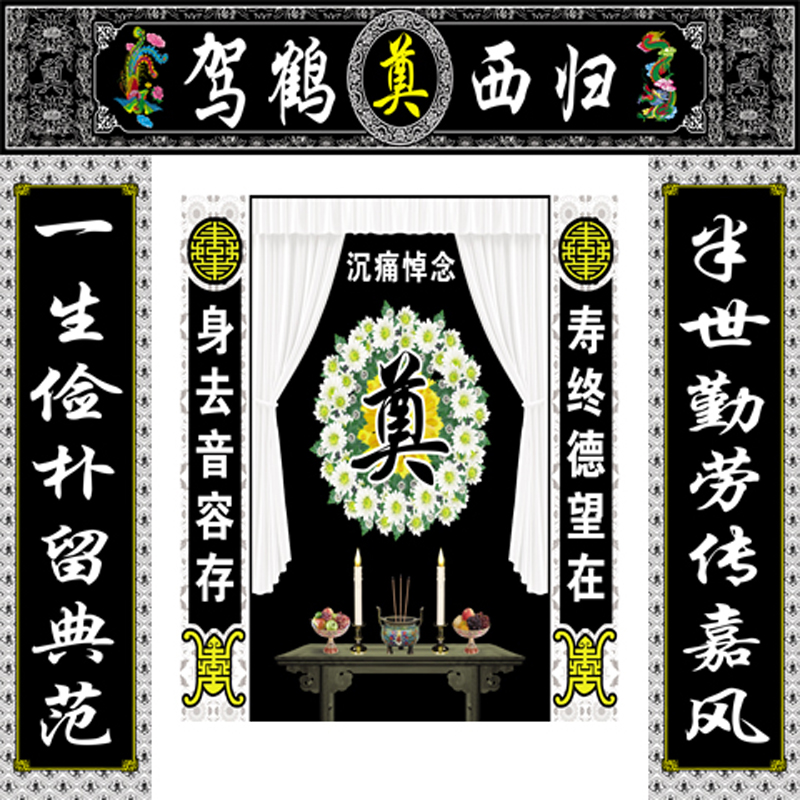 殡葬全套灵堂装饰布高清背景布置白事丧事用品对联横联背景布热门设计联盟服务商