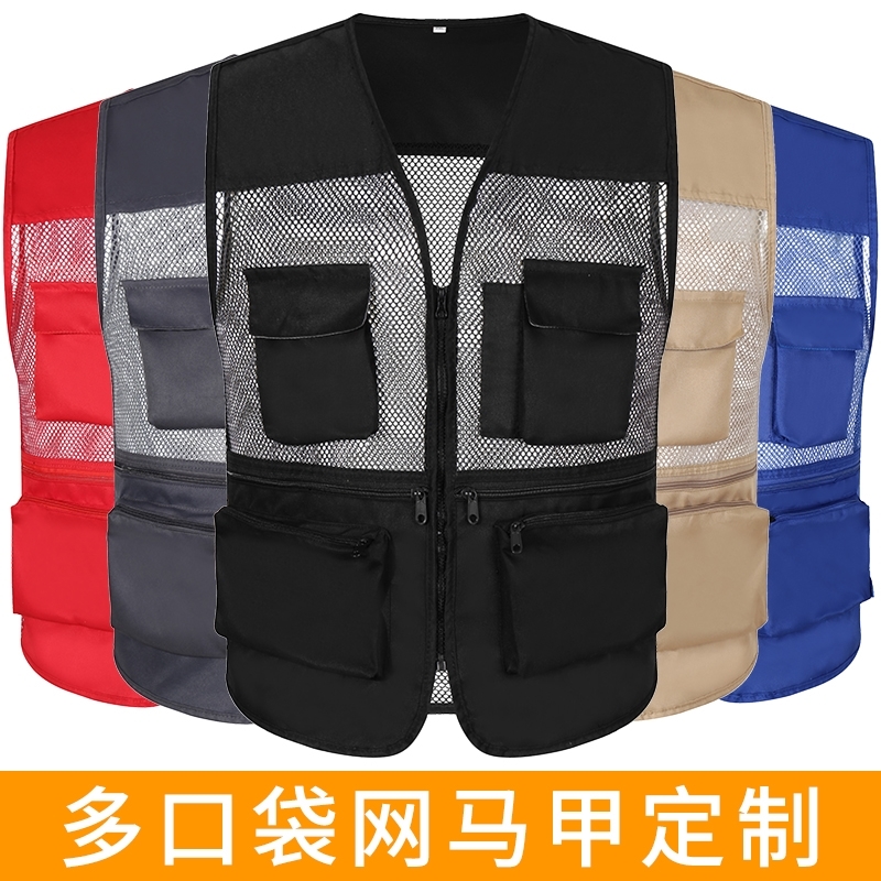 透气网眼网纱多口袋工作服广告马甲定制logo男士摄影钓鱼马夹印字热门设计联盟服务商