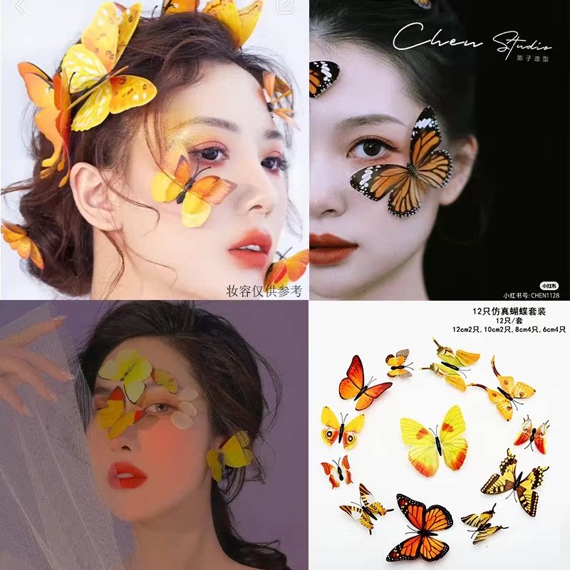 3D仿真立体单层蝴蝶贴脸部装饰品拍照舞台妆化妆道具蓝色12只热门设计联盟服务商