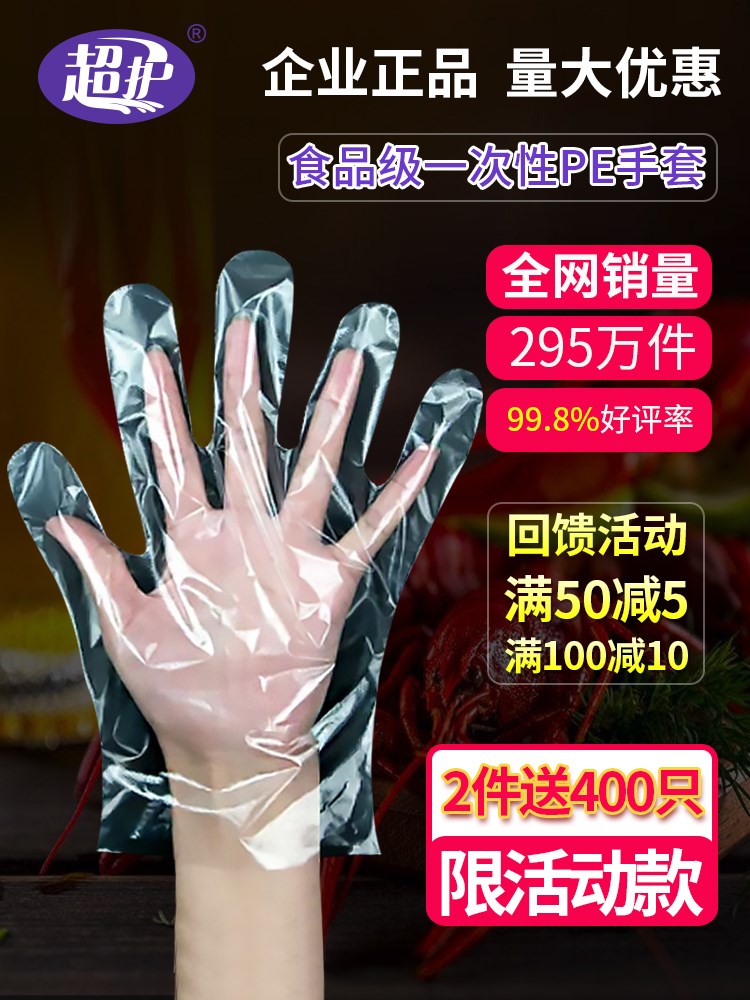 加厚吃龙虾一次性手套塑料透明食品薄膜1000只装餐饮用手膜100只热门设计联盟服务商