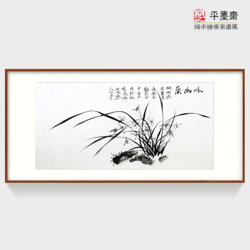 手绘手工国画字画客厅背景茶社酒店书房三尺横幅兰花兰石图热门设计联盟服务商