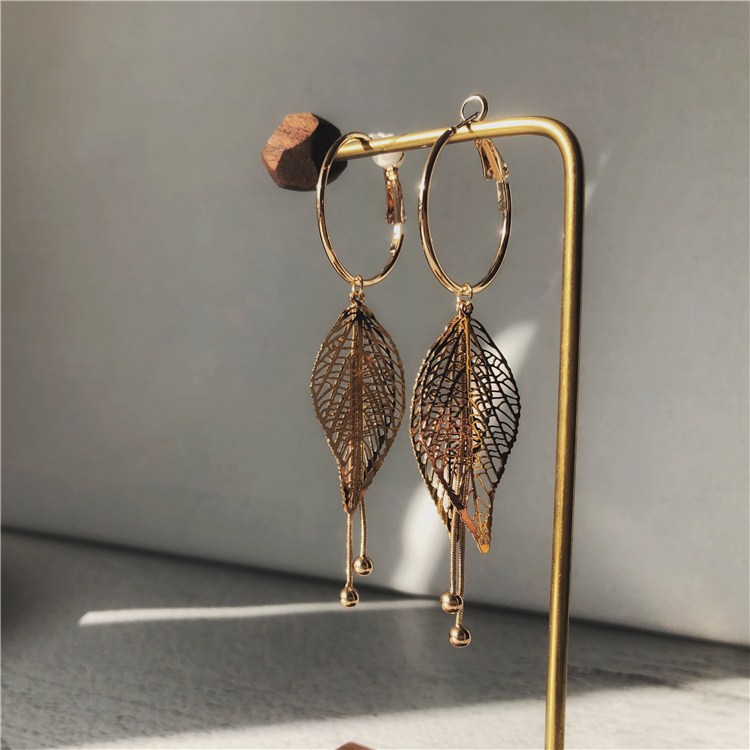 金叶子耳圈手作设计款吊坠耳环长款个性别致无耳洞耳夹热门设计联盟服务商