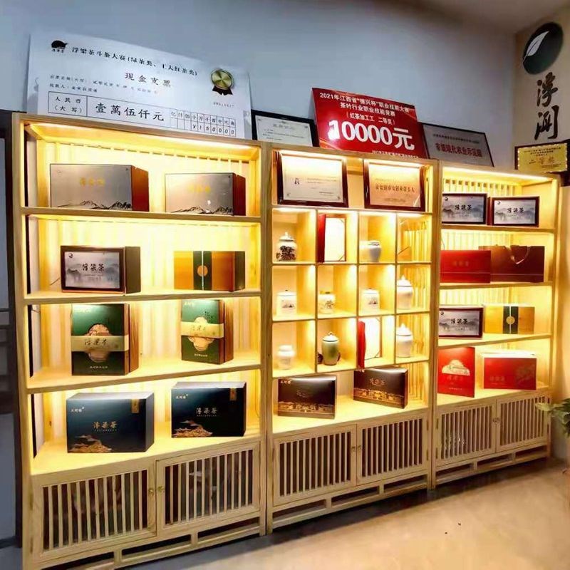 博古架实木新中式茶叶手办酒柜化妆品模型饰礼品美容院展示柜带灯热门设计联盟服务商