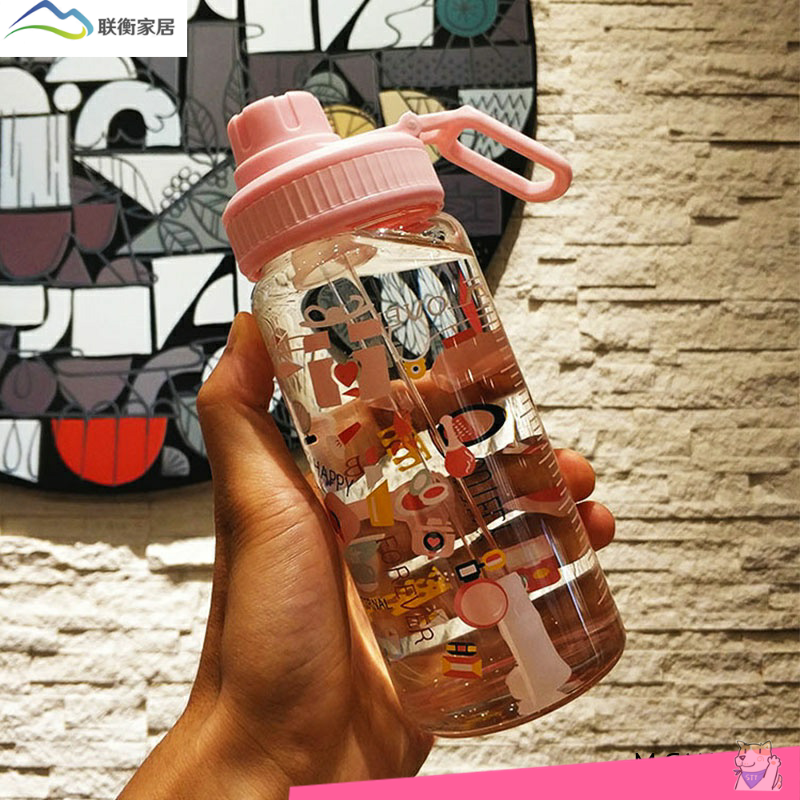 韩国网红可爱大容量吸管玻璃杯带刻度漫画水杯自行车密封牛奶茶杯热门设计联盟服务商