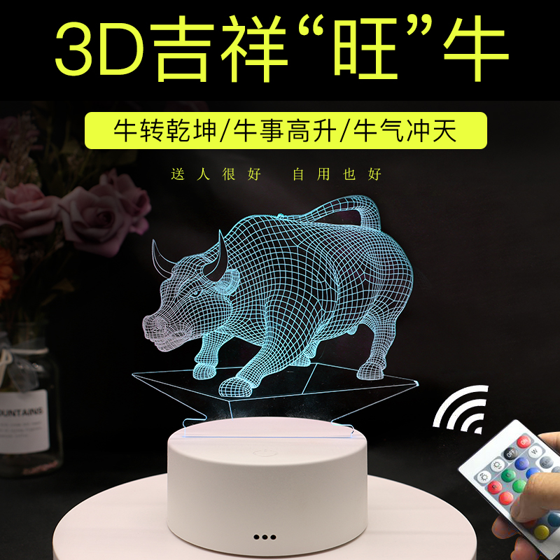 华尔街牛气冲天3d小夜灯遥控变色台灯卧室床头灯装饰灯办公桌礼品热门设计联盟服务商