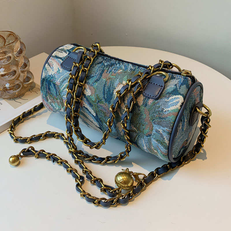 复古油画包包小众设计感小包包2021新款帆布中古链条单肩斜挎女包热门设计联盟服务商