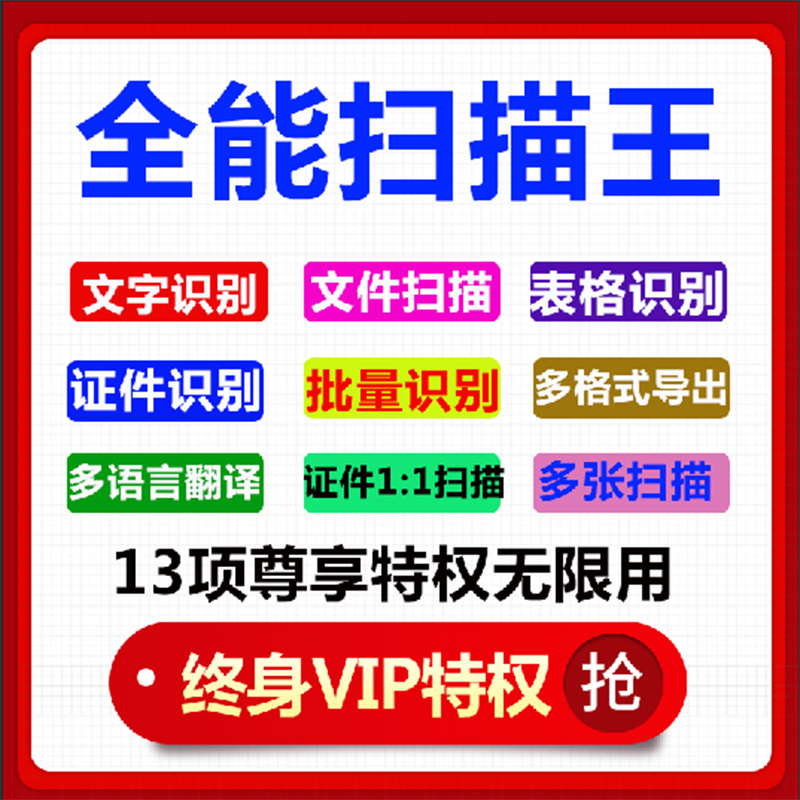 全能扫描王版安卓VIP会员OCR图片文本表格识别扫描软件热门设计联盟服务商
