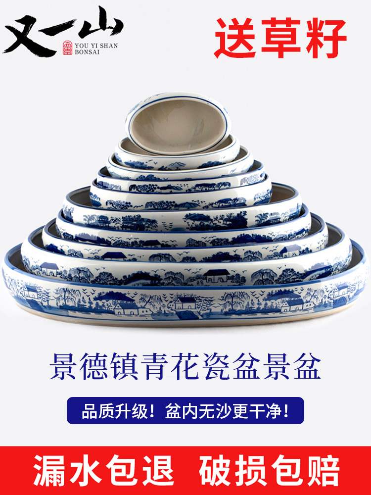 吸水石底座盆上水石专用盆假山盆景水仙水培多肉微景观青花瓷花盆热门设计联盟服务商