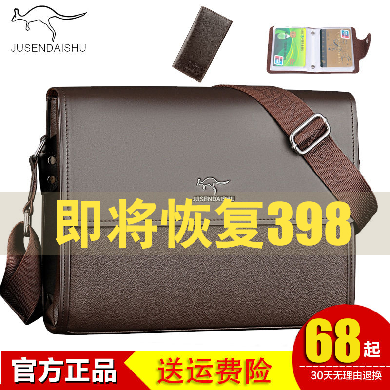 袋鼠品牌男包真皮商务休闲公文包大容量男背包中年男士包包单肩斜挎包横款公事包办公用A4文件包牛皮挂包多功能跨包送爸爸热门设计联盟服务商