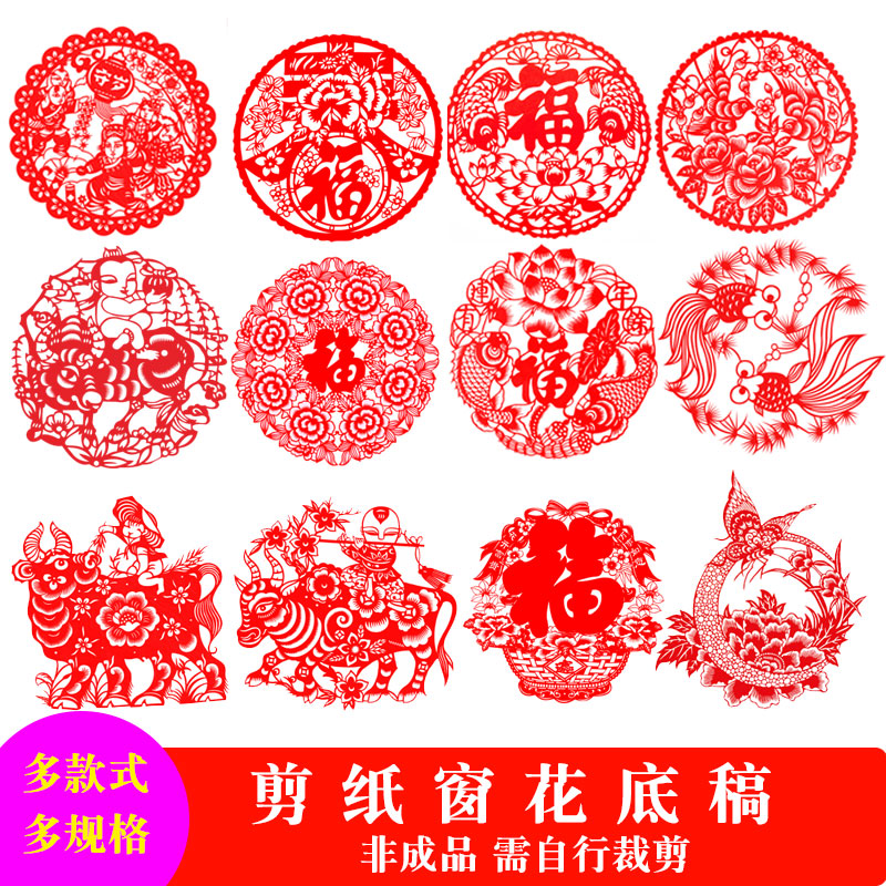 中国风纯手工剪纸底稿图案刻纸镂空窗花素材剪纸材料。热门设计联盟服务商