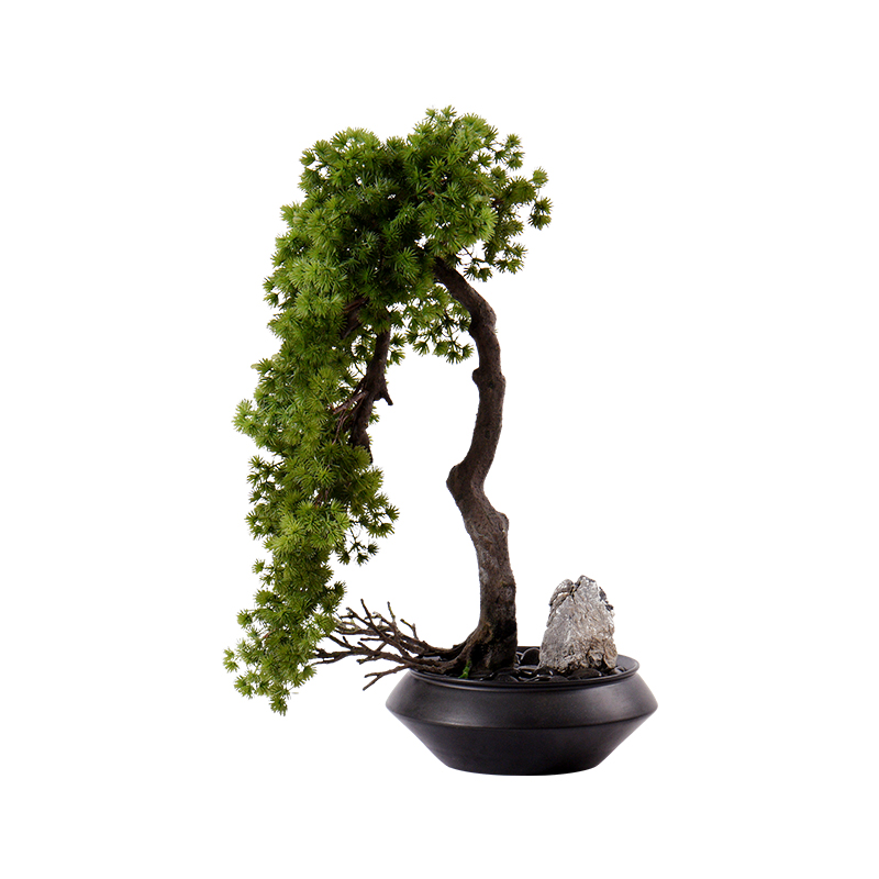 新中式仿真禅意崖柏迎客松售楼中心走廊尽头盆景餐厅玄关酒店摆件热门设计联盟服务商