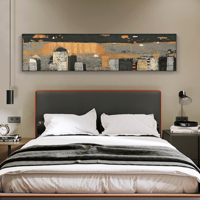 卧室床头装饰画房间主卧横幅挂画客厅背景画后现代抽象建筑风景画热门设计联盟服务商