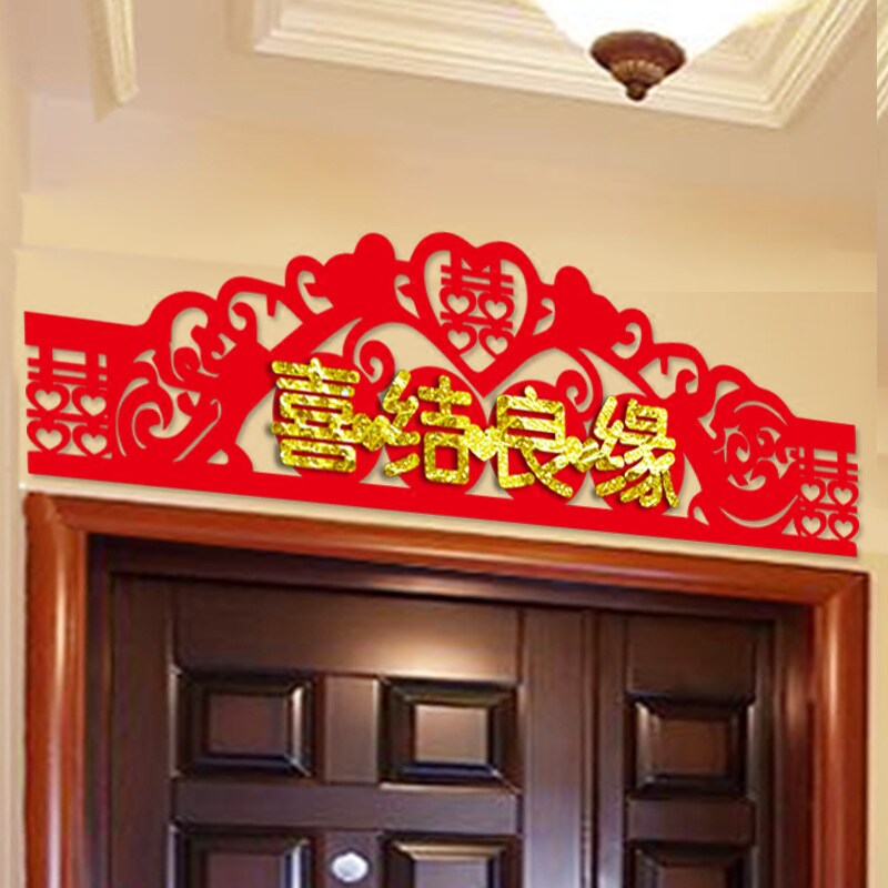 结婚婚庆用品喜庆门楣无纺布喜字婚房布置门幅横幅门帘喜事门联热门设计联盟服务商
