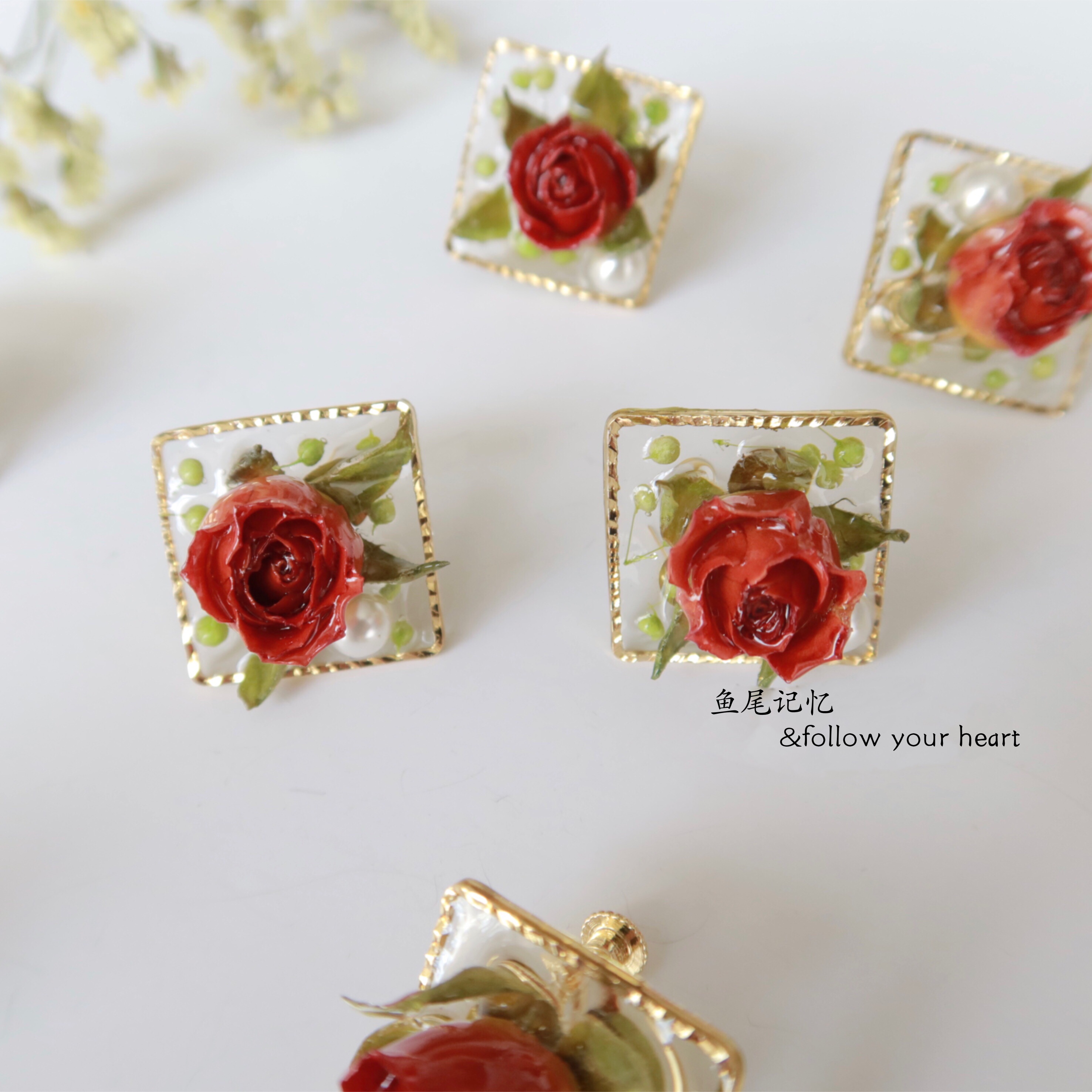 原创设计手作小花的温度&橙红女孩天然真花玫瑰温暖耳环仙女饰品热门设计联盟服务商