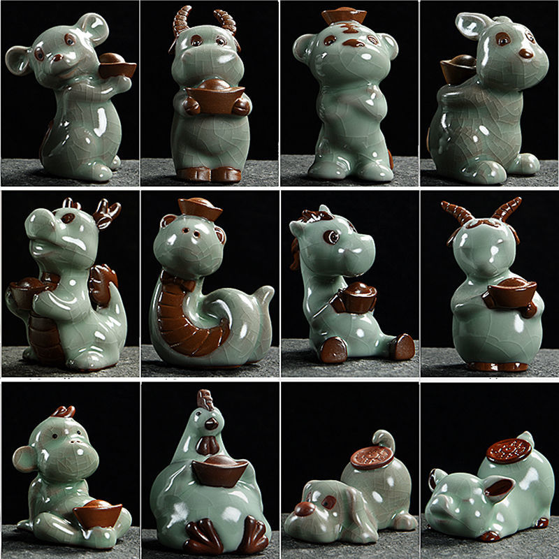 可爱十二生肖动物装饰陶瓷工艺老鼠牛老虎兔子龙蛇马绵羊猴子。热门设计联盟服务商