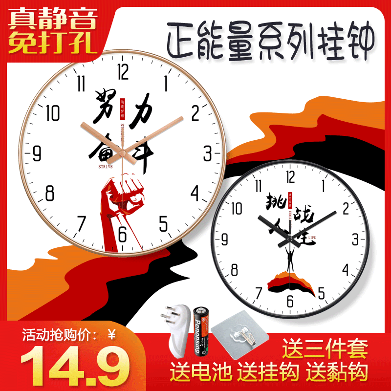 公司时钟办公室挂钟企业文化钟表室内静音墙上装饰努力奋斗可定制热门设计联盟服务商