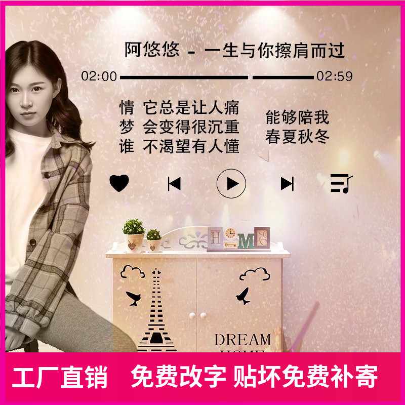 车贴装饰阿歌词贴纸抖音墙定制墙面音乐悠悠擦肩而过曲贴风抒情。热门设计联盟服务商