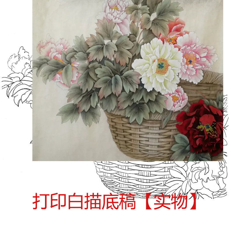 工笔画打印白描底稿A素材竖幅鱼花鸟小品初学者临摹练习线稿热门设计联盟服务商