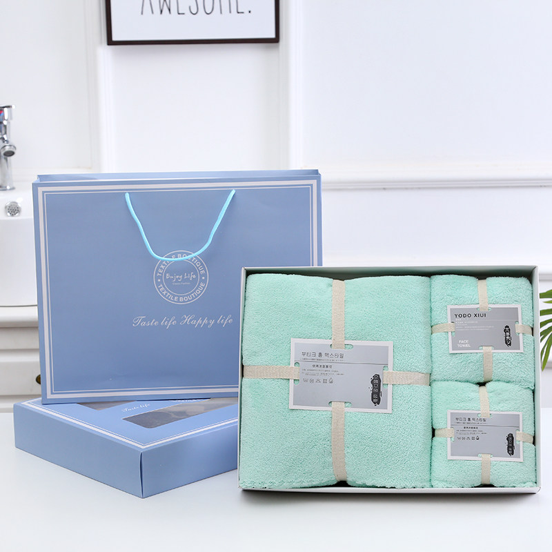 柔浴吸水珊瑚绒软巾毛巾三件套礼盒装婚庆伴L手礼公司团购订制LOG热门设计联盟服务商