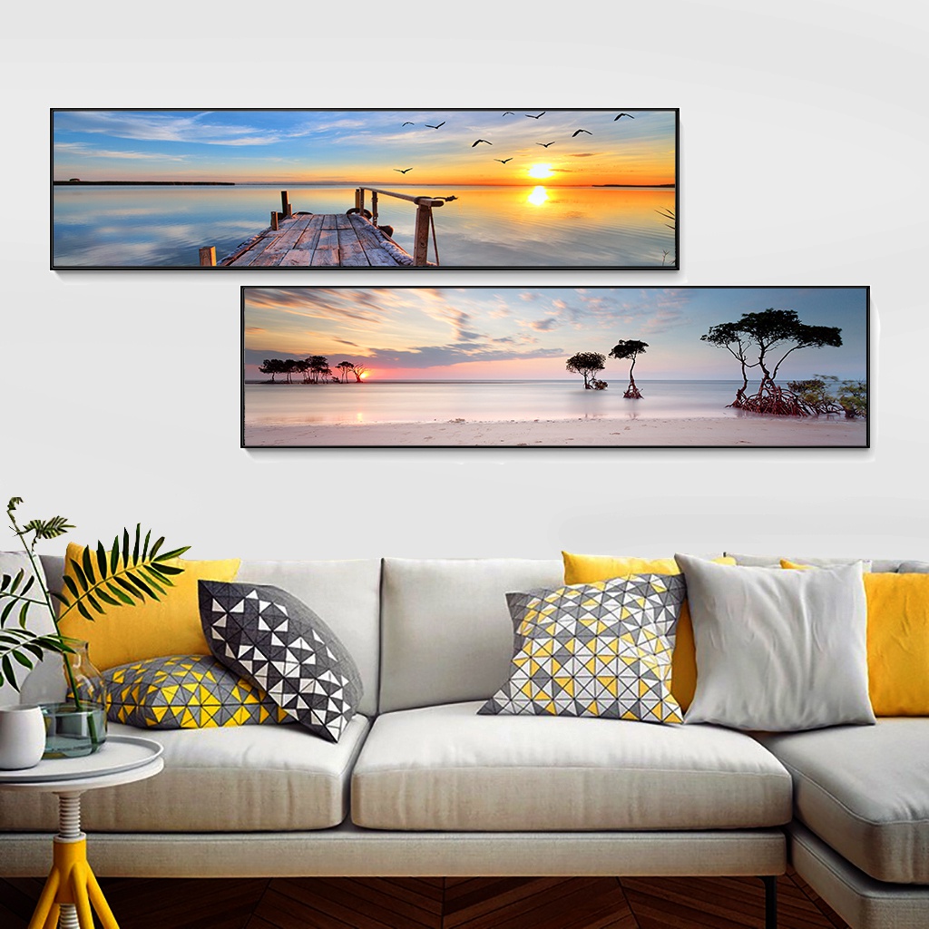 北欧简约酒店床头装饰画客厅挂画海边码头风景横幅墙画宾馆民宿画热门设计联盟服务商