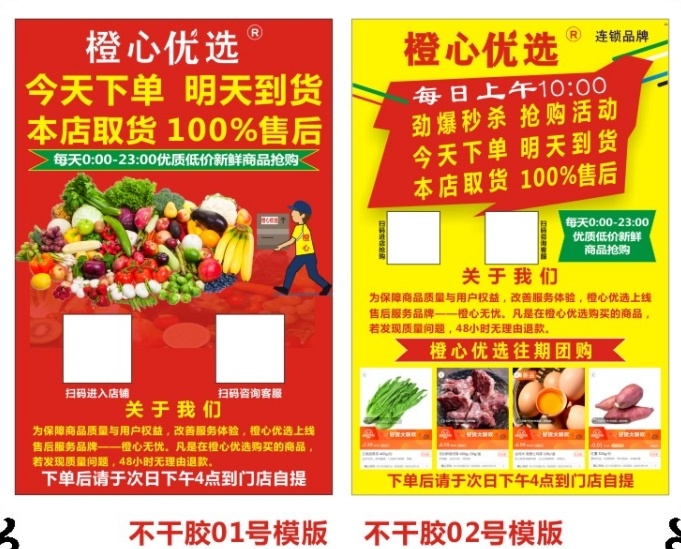 橙心优选海报贴纸宣传单页背胶名片卡单双面订做二维码免费设计热门设计联盟服务商