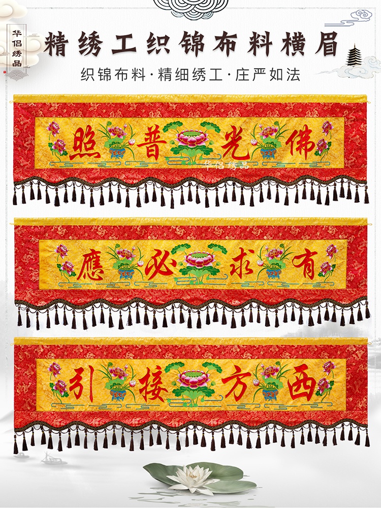 新款佛堂横眉横幅横彩刺绣佛龛用品佛光普照莲花提花面料绣品华侣热门设计联盟服务商