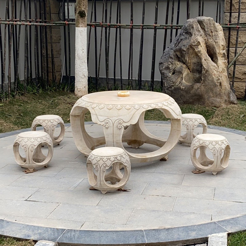 石桌石凳户外庭院花园天然仿古家用做旧圆鼓室外圆桌子旋转桌别墅热门设计联盟服务商