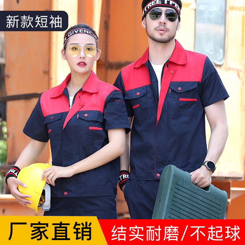 工作服套装男夏季短袖劳保服透气耐磨工厂车间厂服定制工装汽修服热门设计联盟服务商