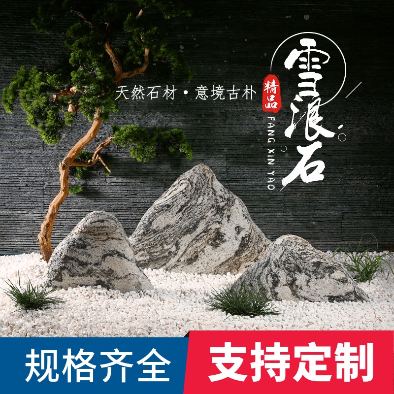 雪浪石景观石室内新中式枯山水布置造景现代石雕假山石切片设计热门设计联盟服务商