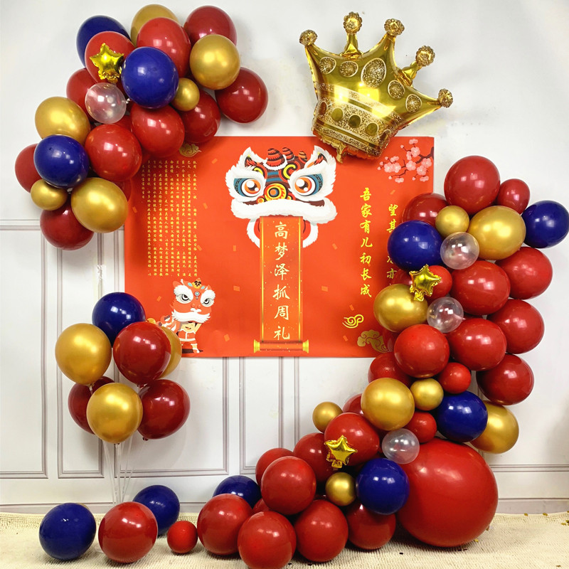 网红中国风宝宝生日一周岁百天抓周宴气球场景布置背景墙装饰海报热门设计联盟服务商