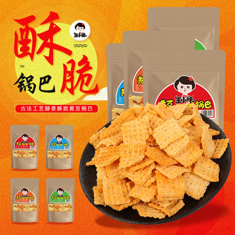 王小妹黄豆锅巴零食小包装休闲小吃办公室食品130g麻辣孜然五香味热门设计联盟服务商