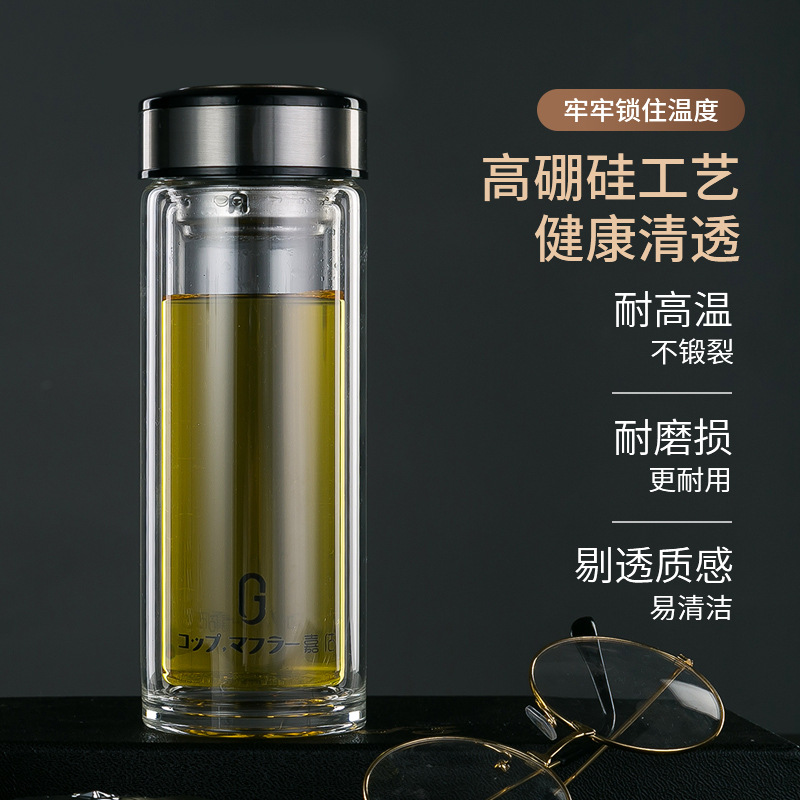 玻璃杯双层透明水杯 便携过滤随手杯男女士家用办公泡茶杯子15/9热门设计联盟服务商