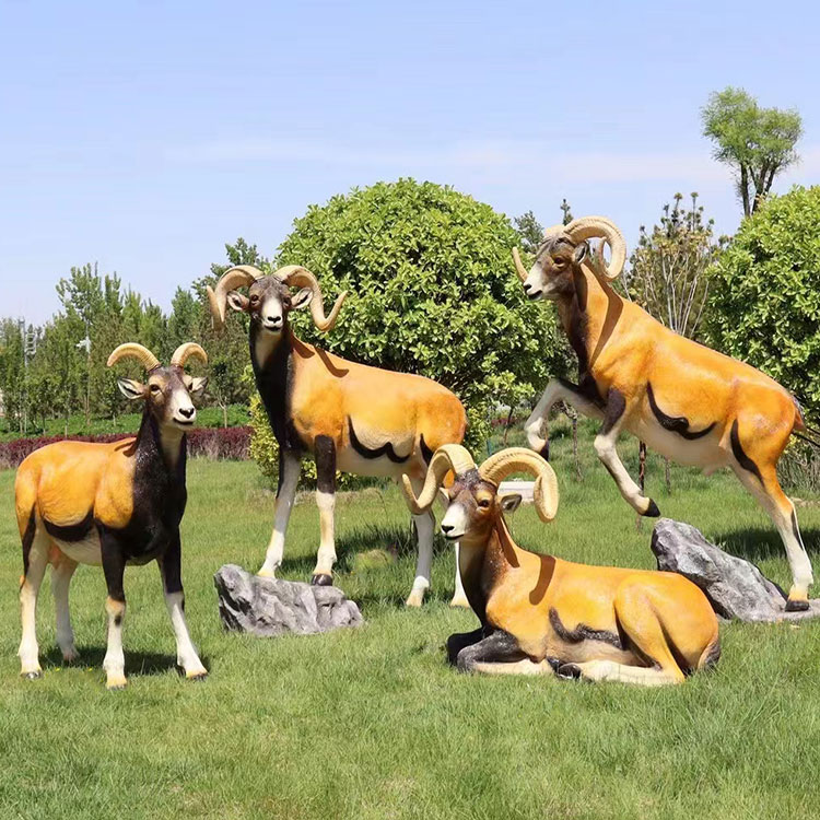 定制仿真山羊雕塑玻璃钢户外动物盘羊雕像景观庭院草坪大绵羊摆件热门设计联盟服务商