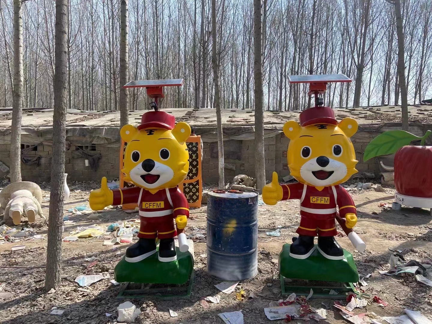 现货玻璃钢卡通雕塑消防员虎威威定做公园森林防火绿地景观商场摆