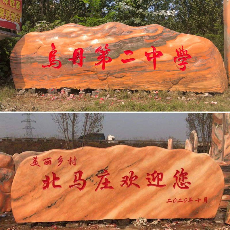 大型晚霞红景观石自然石风景石刻字石户外村标石公园村牌石假山石热门设计联盟服务商