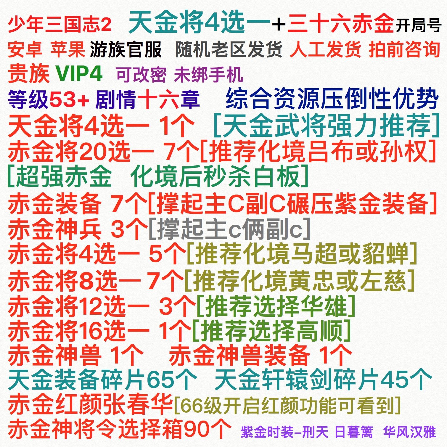 少年三国志2VIP4--天金将赤金紫金资源老区开局ios安卓游族官服热门设计联盟服务商