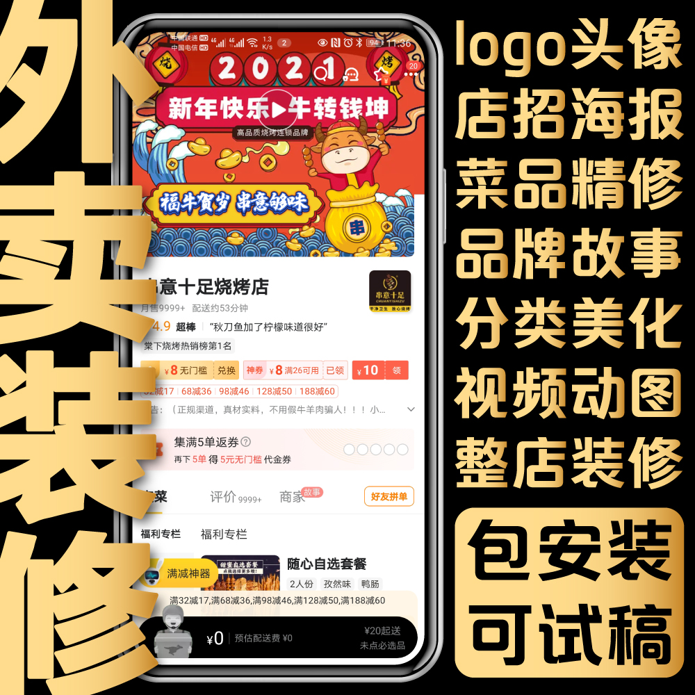 外卖装修 美团外卖设计 饿了么店铺装修 LOGO头像海报菜品图设计