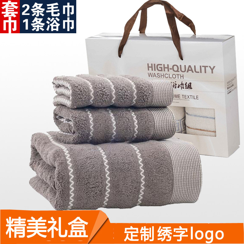 纯棉毛巾浴巾三件套礼盒套装 结婚回礼节日礼品团购毛巾浴巾套装热门设计联盟服务商
