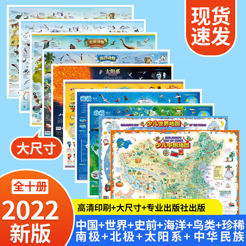 2022年新版10张中国地图世界地图 小学生专用挂画儿童科普百科启蒙益智贴图史前动物海洋动物太阳系南极北极珍惜动物世界鸟类挂图热门设计联盟服务商