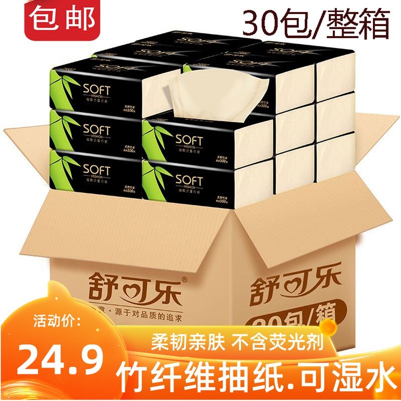 舒可乐竹元素本色抽纸商用餐饮实惠装整箱30包卫生纸抽取式面巾纸热门设计联盟服务商
