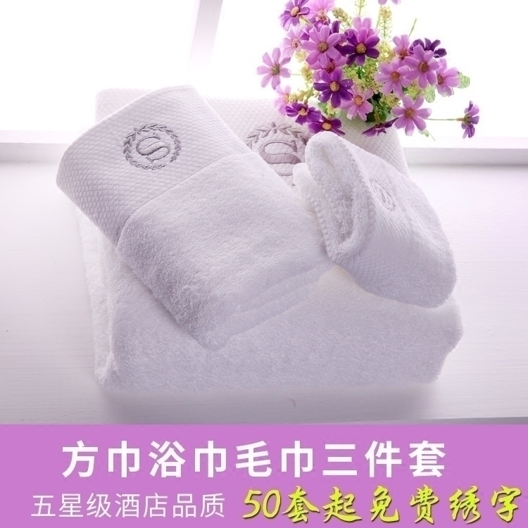 五星级酒店用纯棉加厚白色宾馆健身美容院洗浴毛巾方巾可定制logo热门设计联盟服务商