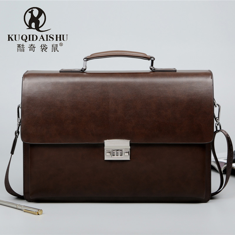 袋鼠男包带三位密码锁新款14寸电脑包公文包硬皮企业商务手提包热门设计联盟服务商