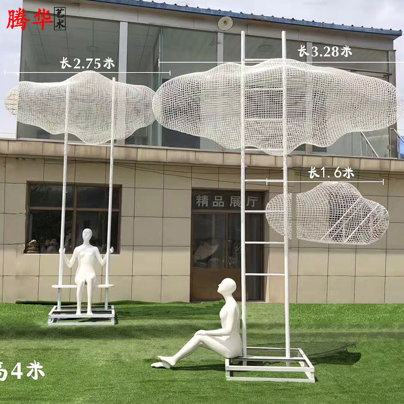 户外大型不锈钢镂空云朵雕塑玻璃钢人物创意摆件售楼园林景观装饰热门设计联盟服务商